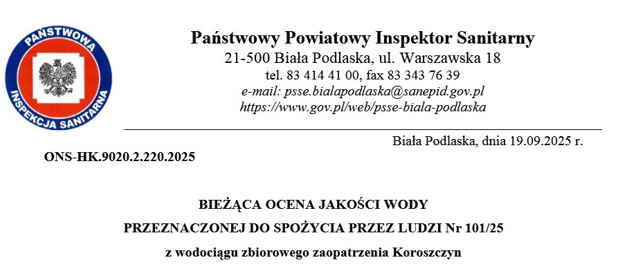 SPRAWOZDANIE Z BADAŃ WODY Z ZBIOROWEGO ZAOPATRZENIA W KOROSZCZYNIE